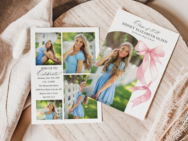 This pink coquette bow graduation photo card allows your favorite senior pictures to take center stage!