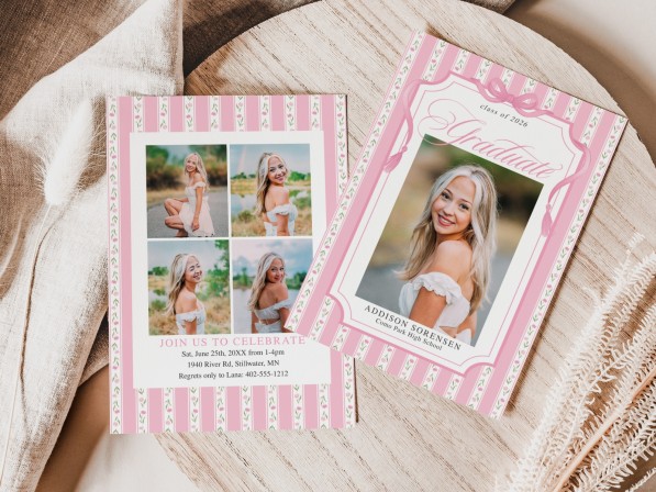 Pink Floral Stripes Grad Card